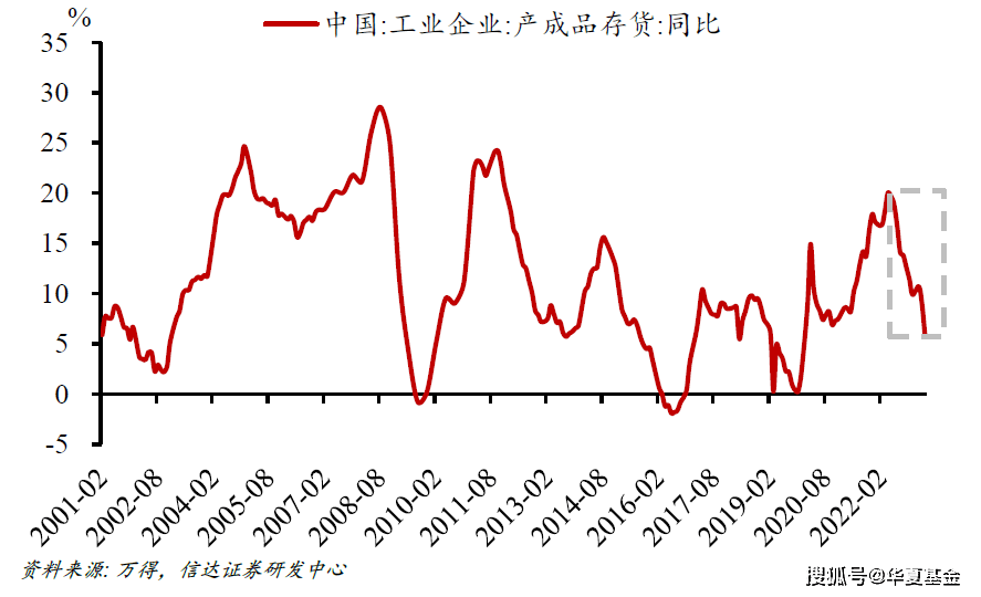 第一,经验上我国库存周期的底部在产成品存货同比0%左右,如果保持当前速率去库,库存同比将在三季度末触及0%。