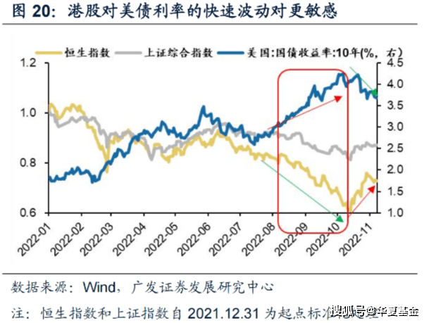 美债利率是资产定价中无风险利率的锚。与A股相比,港股对美债利率的快速波动更敏感。22年8月以来海外无风险利率快速上行时,港股更为承压;而当无风险利率回落,港股的弹性亦将更大。