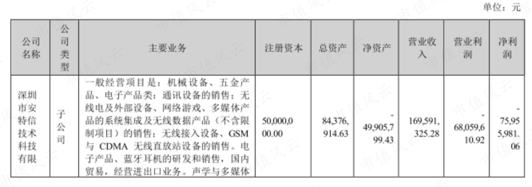 真实情况是,2022年安特信净利润亏损7695万元。