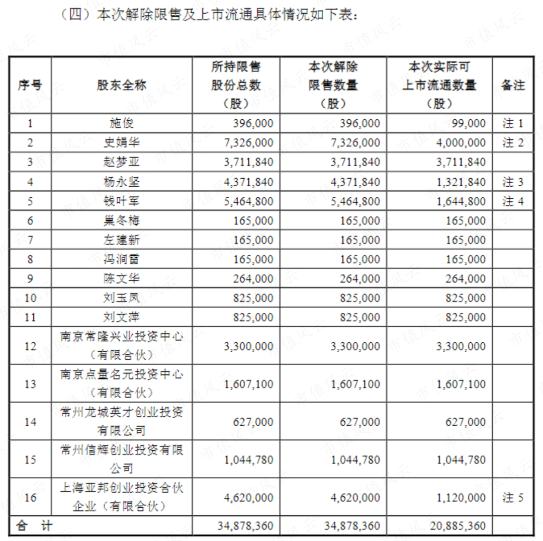 解禁股东名单见下方截图: