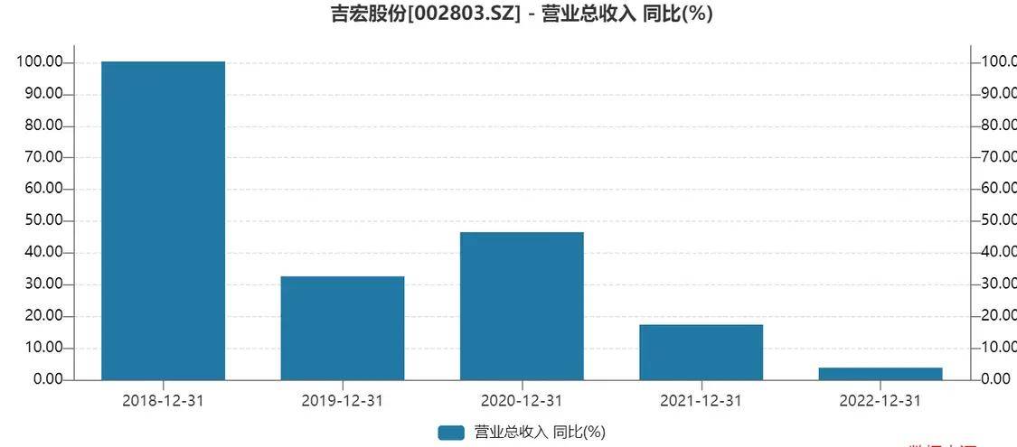 2022年,吉宏股份营收53.76亿元,同比增长3.83%,然而看似微涨的数据背后,却是营收增长率持续下降,净利润连年暴跌。