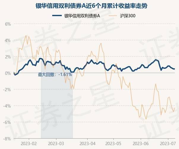 7月10日,银华信用双利债券A最新单位净值为1.165元,累计净值为1.725元,较前一交易日上涨0.0%。历史数据显示该基金近1个月下跌0.43%,近3个月下跌0.85%,近6个月上涨0.43%,近1年下跌0.94%。该基金近6个月的累计收益率走势如下图: