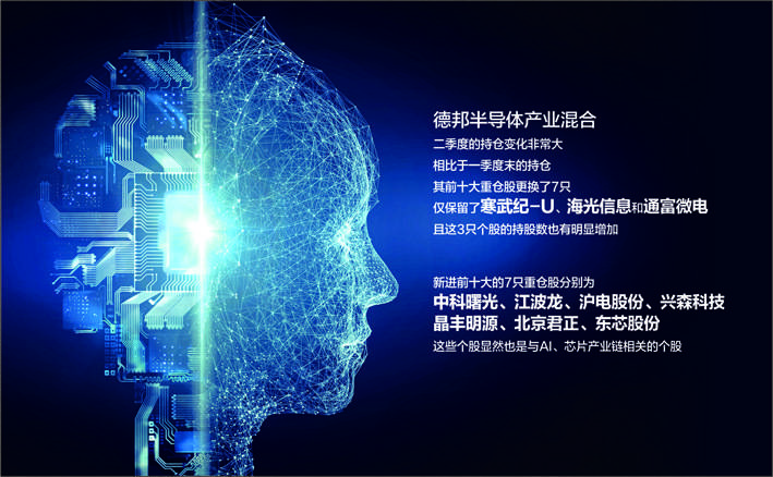 新进德邦半导体产业混合前十大的7只重仓股分别为中科曙光、江波龙、沪电股份、兴森科技、晶丰明源、北京君正和东芯股份。这些个股显然也是与AI、芯片产业链相关的个股。
