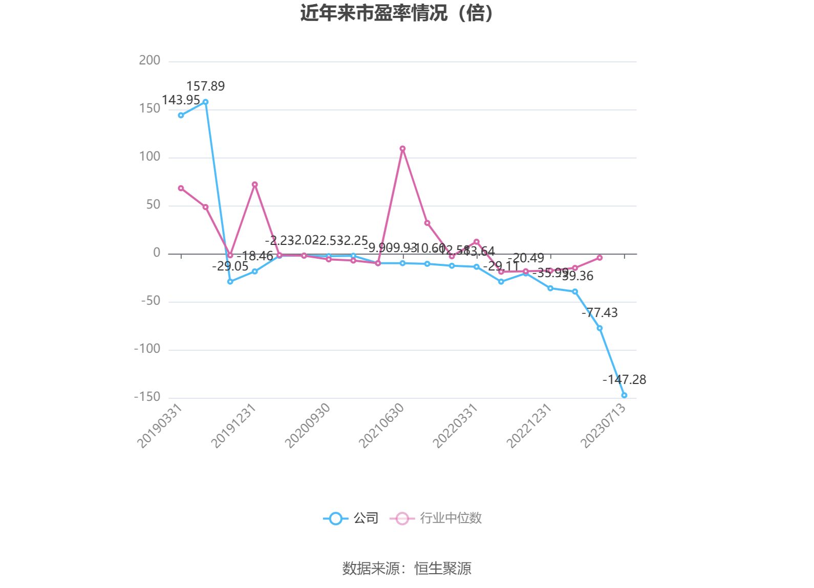 市盈率为负时,不显示当期分位数,会导致折线图中断。