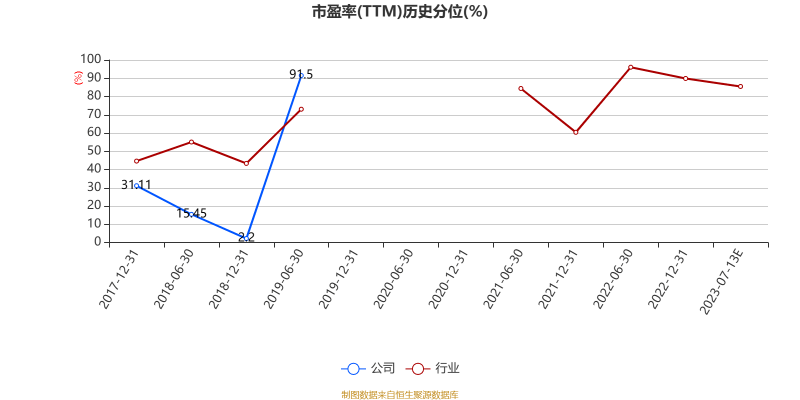以本次披露业绩预告均值计算,公司近年市盈率(TTM)图如下所示: