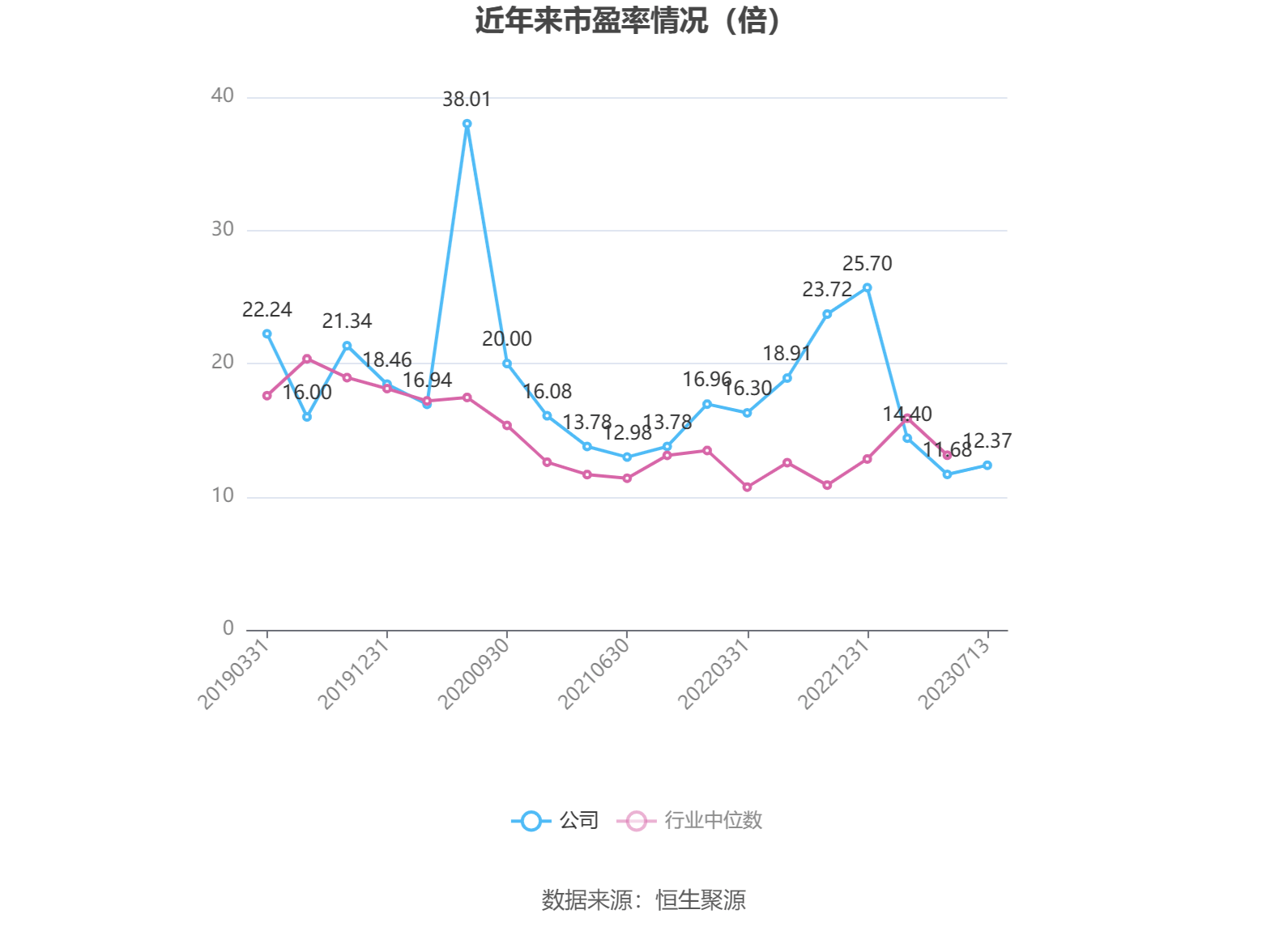 以本次披露业绩预告均值计算,公司近年市盈率(TTM)图如下所示: