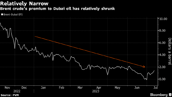 北海原油相对中东基准迪拜原油价格的大跌,再加上运费的走低,显示亚洲炼油商可能从欧洲、美洲等远距离生产商购买了更多的原油。