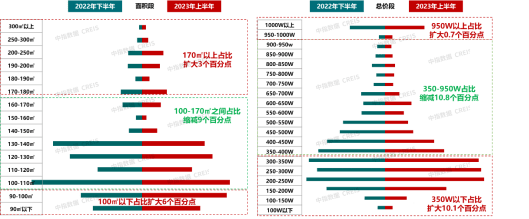 图:2023年上半年杭州市区住宅成交面积段和总价段分布
