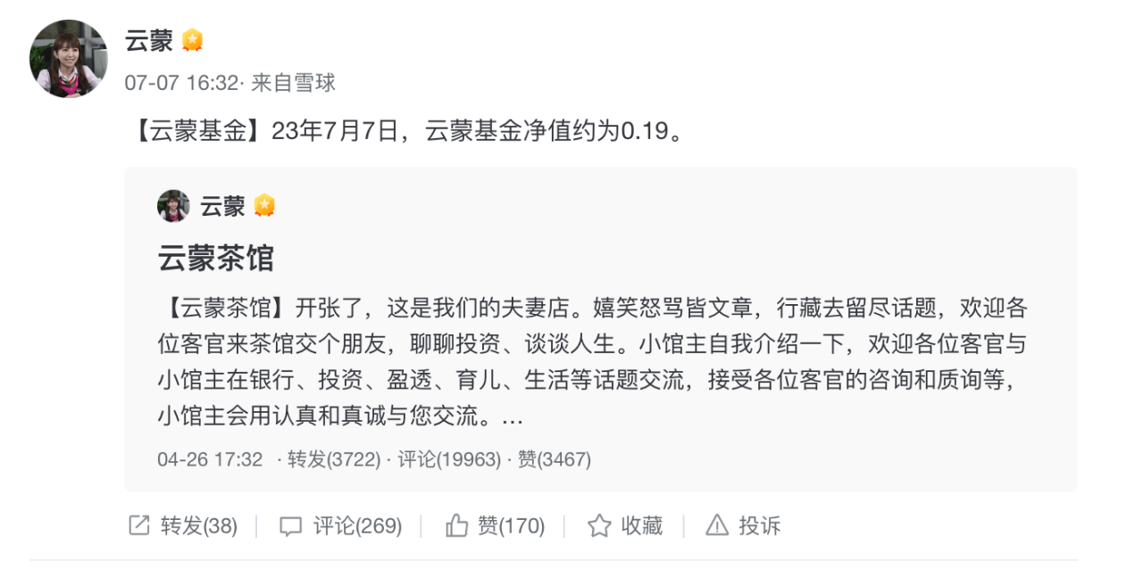 拥有44万粉丝的私募雪球大V“云蒙”,再次因基金净值下跌引发市场关注。