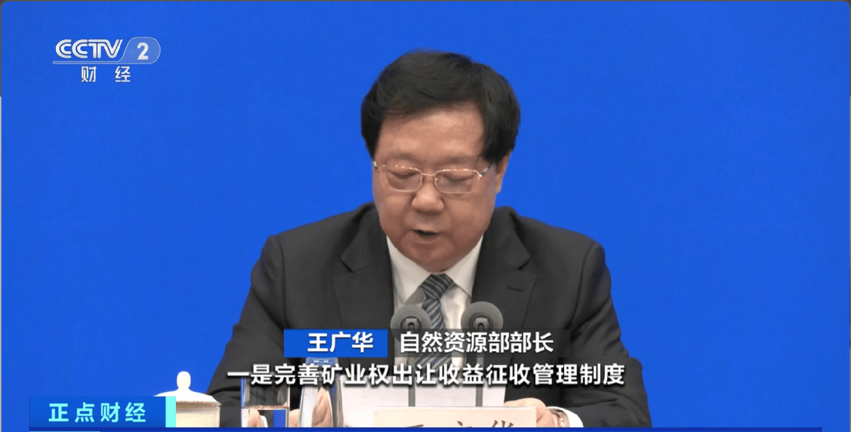 自然资源部部长 王广华:一是完善矿业权出让收益征收管理制度。将征收方式由一次性征收,改为主要在矿山生产时按销售收入逐年征收。二是完善矿产资源勘查开采登记管理。鼓励实施矿产资源综合勘查。放活探矿权二级市场,放开招标拍卖挂牌取得的探矿权转让年限限制,允许探矿权流转。精简矿业权登记申请要件和审批环节,提高审批效率。