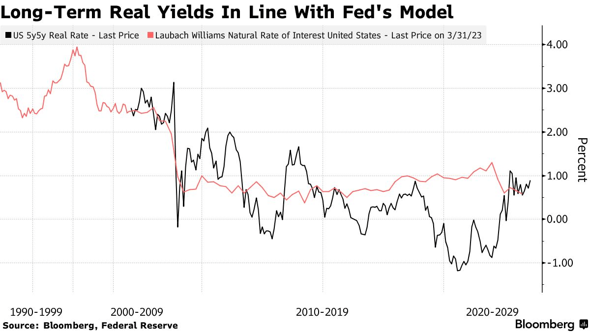 到目前为止,认为中性利率将上升的人只占少数。虽然一小部分美联储官员上调了他们对长期利率的预期,但大多数官员的预期中值仍为2.5%。纽约联储主席威廉姆斯及其同事在5月更新的模型中基本上支持这一观点。