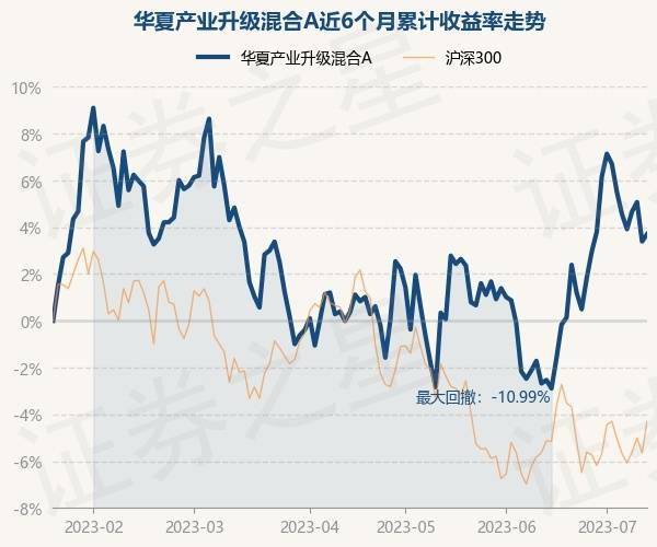 7月13日,华夏产业升级混合A最新单位净值为2.0284元,累计净值为2.0284元,较前一交易日上涨0.3%。历史数据显示该基金近1个月上涨6.38%,近3个月上涨3.73%,近6个月上涨3.77%,近1年下跌4.65%。该基金近6个月的累计收益率走势如下图: