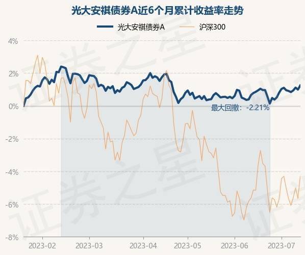 7月13日,光大安祺债券A最新单位净值为1.2112元,累计净值为1.2619元,较前一交易日上涨0.25%。历史数据显示该基金近1个月上涨0.46%,近3个月下跌0.25%,近6个月上涨1.3%,近1年上涨1.36%。该基金近6个月的累计收益率走势如下图: