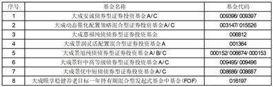 根据大成基金管理有限公司(以下简称“本公司”)与腾安基金销售(深圳)有限公司签订的开放式证券投资基金销售服务协议,腾安基金销售(深圳)有限公司将于2023年7月14日开始销售本公司旗下部分基金。投资者可通过腾安基金销售(深圳)有限公司办理开户、申购、赎回等业务,办理程序遵循基金的法律文件和腾安基金销售(深圳)有限公司相关规定, 具体基金如下: