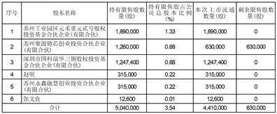 (3)股东苏州聚源铸芯创业投资合伙企业(有限合伙)剩余限售股数量为股份限售期限登记为不同批次的限售股。