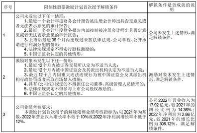 综上所述,董事会认为2022年限制性股票激励计划首次授予的第一期限制性股票解锁条件均已满足,激励对象在首次授予的第一期限制性股票的解锁条件均已成就。