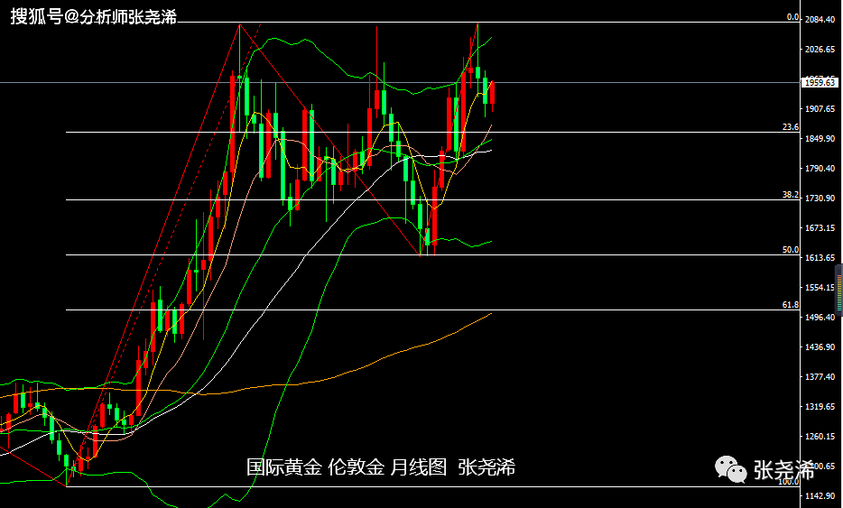 技术上:月图级别,金价4月及5月连续两度收取明显的射击之星见顶看空形态,同时也增强了相对于2075美元附近三顶一线的阻力压制力度,也增强了中线遇阻回落的看跌前景,这暗示后市仍有望展开持续的回调行情。