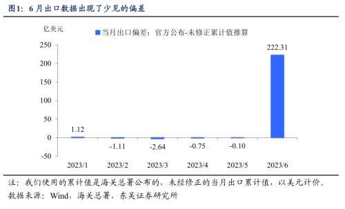 为什么说这个差值“意味深长”?200亿美元的偏差虽然不算突出(2022年出口规模为3.6万亿美元),但可能带来完全不同的结果。如果官方公布的更贴近实际,6月出口虽弱于季节性、但至少环比上出现了企稳改善;如果是后者(2630亿美元),那么出口还要继续寻底。我们可以做一个极端情形的测算来看看这个差异: