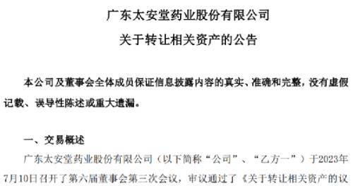 7月13日,*ST太安(太安堂)收到了深交所的关注函,源于公司7月10日的一次资产出售。