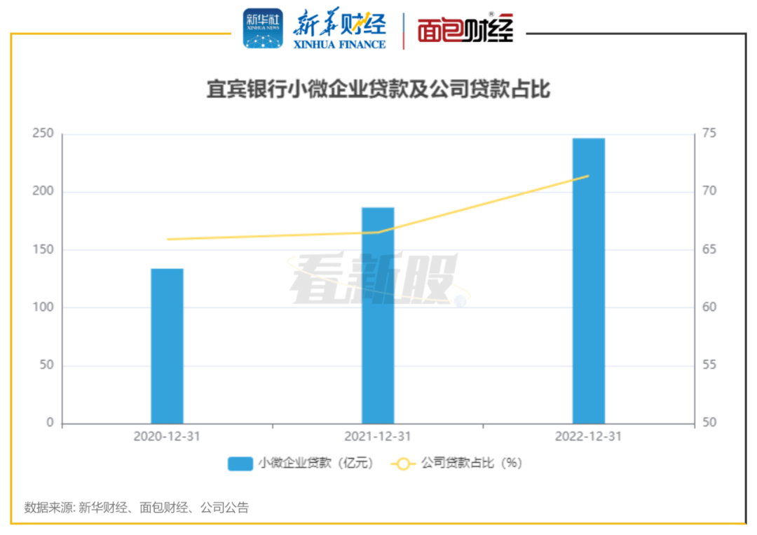 数据显示,截至2022年末,宜宾银行的小微企业贷款达246.39亿元,在公司贷款中的占比达71.4%。2020年至2022年间,该行小微企业贷款的复合年增长率为35.7%。