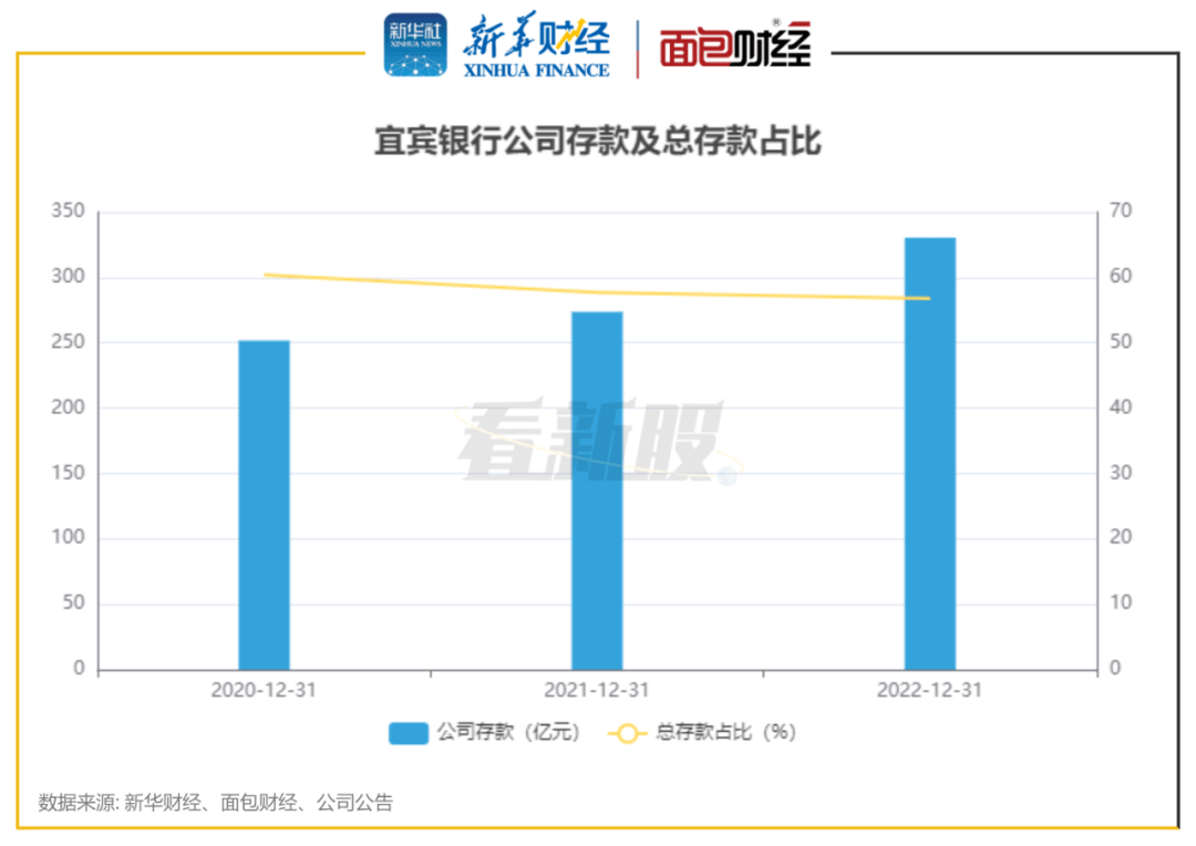 聆讯资料显示,宜宾银行的存款结构与贷款结构较为类似,近三年,该行的存款总额持续增长,且主要以公司存款为主。截至2022年末,宜宾银行的存款总额为582.04亿元,其中,公司存款占比为56.8%。