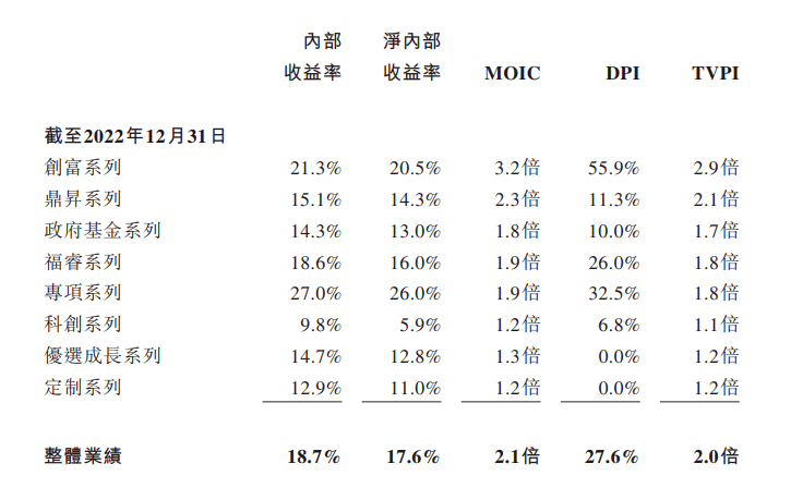 截至2022年12月31日,博将资本整体DPI仅为27.6%,旗下产品DPI最高的是创富系列产品为55.9%,而优选成长系列和定制系列产品DPI更是为0。