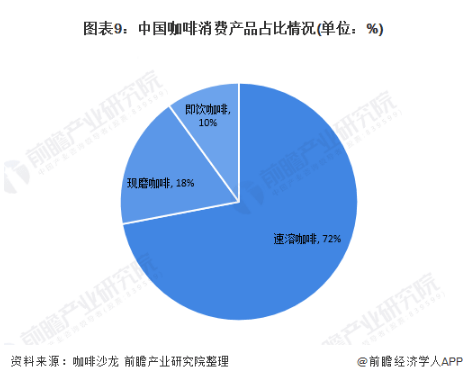 根据咖啡沙龙发布的《咖啡年刊2021》的数据显示,目前中国咖啡消费市场规模在1000亿元左右;其中,速溶咖啡占72%,即饮咖啡占10%,现磨咖啡占18%;与欧美、日本等发达国家相比,中国的咖啡消费仍处于初期阶段。
