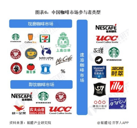 目前,我国咖啡市场参与者众多,按咖啡细分市场的参与者类型来看,现磨咖啡的代表性品牌有星巴克、瑞幸、太平洋咖啡、Costa等;而即饮咖啡市场的代表品牌有雀巢、星巴克、UCC、农夫山泉炭仌等;在速溶咖啡市场中,参与者类型众多,呈现磨咖啡、即饮咖啡和新势力品牌共同竞争的局面。