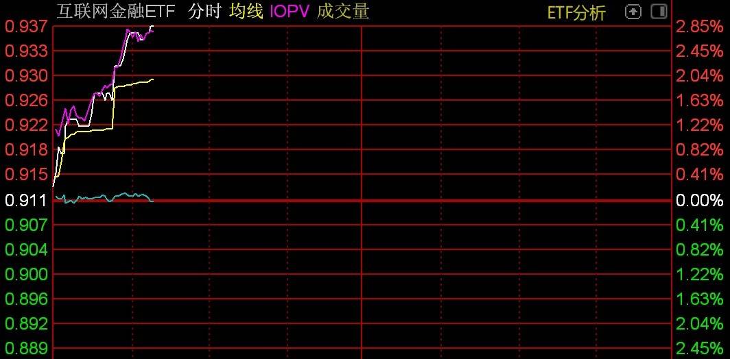 受重仓股上涨影响,互联网金融ETF涨超2%。