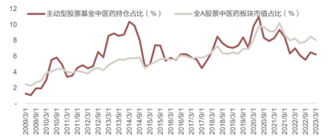 医药板块目前整体为低配状态。根据2023Q1基金一季报持仓披露情况,从所有主动型股票基金的医药持仓(按重仓持股比例推算)情况来看,截至3月31日,A股医药板块2023年基金一季报的持仓比例为6.22%,环比有所下降,仍处于近三年低位水平。后续仍有充分增配空间。