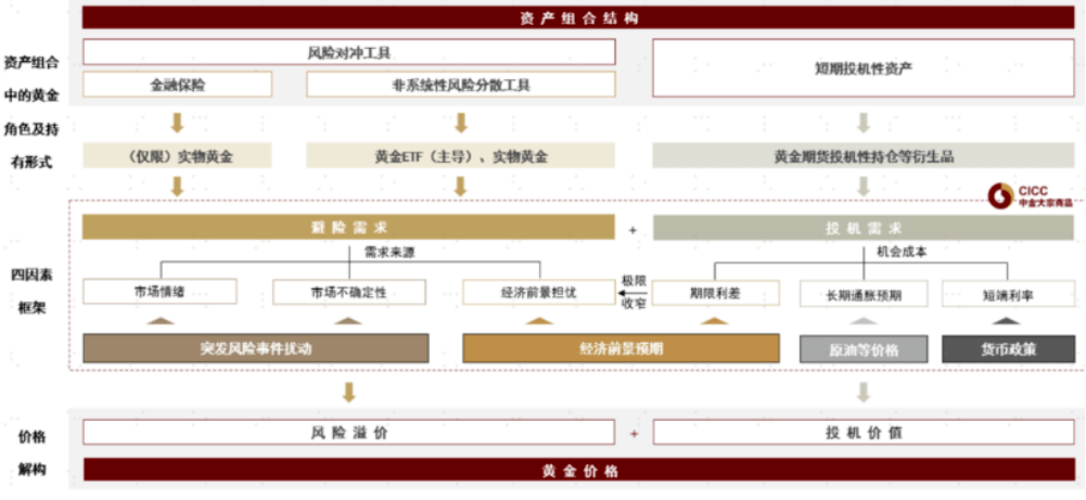 图:黄金在资产组合中的角色、对应持有需求及价格结构资料来源:中金公司研究部