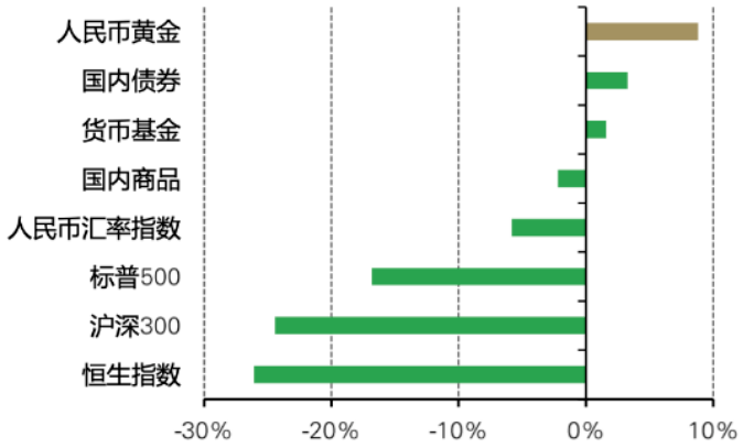 图:2022年以人民币计价的黄金跑赢了国内的主流资产数据来源:中债估值中心,中证指数中心,万得,上海黄金交易所,世界黄金