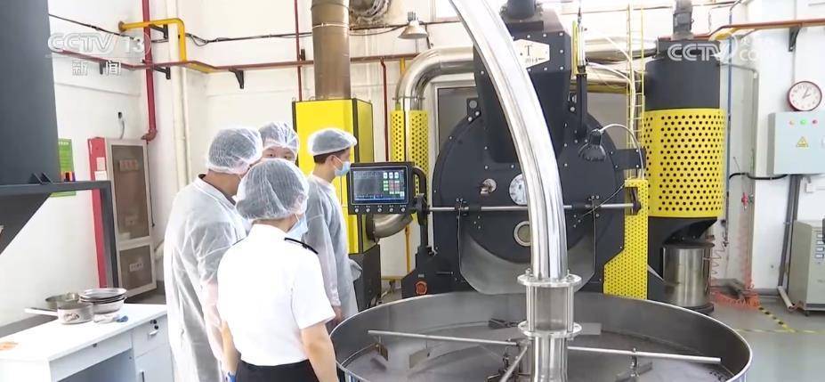 走进这家咖啡企业生产车间里的烘焙产线上,从生豆配料、输送到载入、烘焙,几分钟就完成一杯香浓的咖啡。