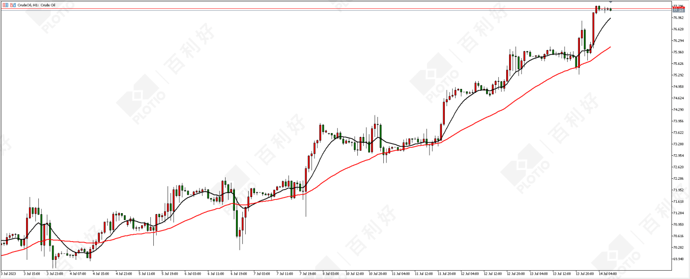 技术面:油价本周以来表现亮眼,截至目前累计涨幅接近5%。早前对于原油向上趋势已经形成的判断现在来看是正确的。以目前的态势,油价较有可能在近期冲击80美元整数关口。