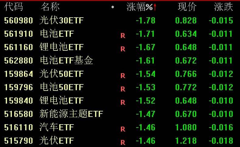 下跌方面,光伏、锂电池等相关ETF跌逾1%。