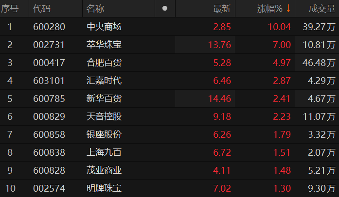 原标题:零售股异动拉升 中央商场午后涨停