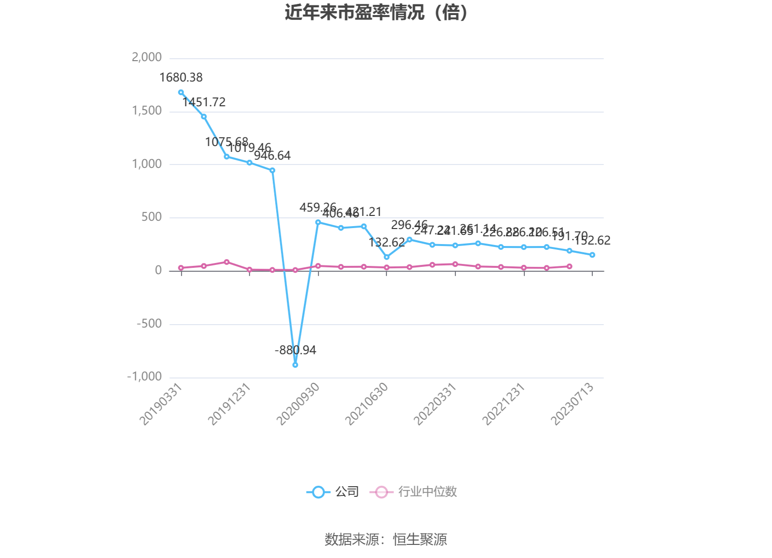 市盈率为负时,不显示当期分位数,会导致折线图中断。