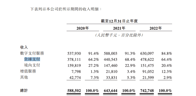 连连数字在2022年实现的全球支付收入占同期总收入的比重从上年的68.4%下降至64.4%。其在招股书中亦指出,其绝大部分收入来自全球支付业务,该业务面临监管及合规风险。