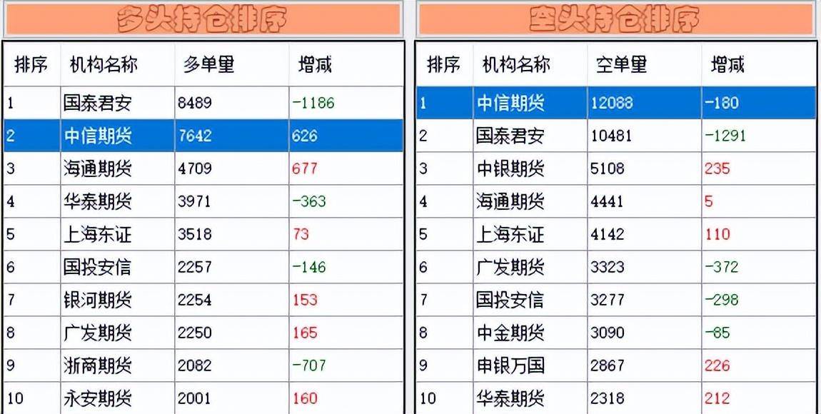 先来看下对下一个交易日有预判作用的“神器”——中信期货在股指期货上的增减持情况。它在沪深300股指期货上多单方面增仓626手,空单方面减仓180手,给出了“偏多”的信号——预判失误。