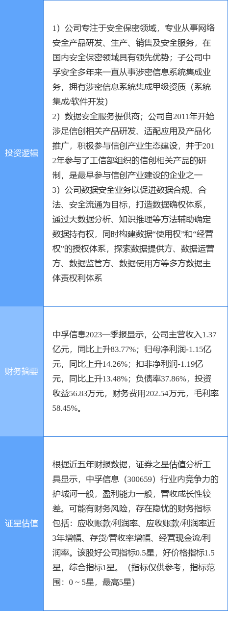 中孚信息涨停收盘,收盘价24.08元。该股于9点34分涨停,1次打开涨停,截止收盘封单资金为3954.89万元,占其流通市值1.07%。