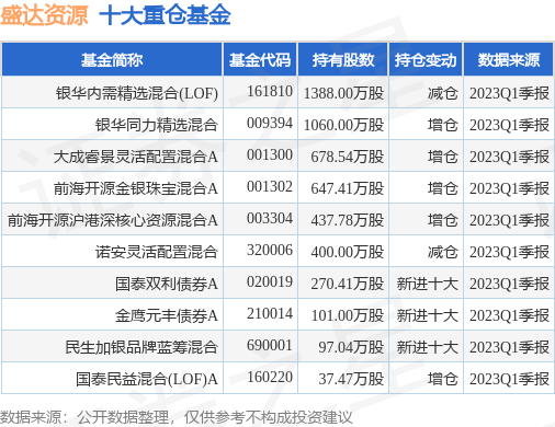 根据2023Q1季报公募基金重仓股数据,重仓该股的公募基金共23家,其中持有数量最多的公募基金为银华内需精选混合(LOF)。银华内需精选混合(LOF)目前规模为25.17亿元,最新净值2.727(7月13日),较上一交易日上涨1.04%,近一年上涨1.45%。该公募基金现任基金经理为刘辉 王利刚。刘辉在任的基金产品包括:银华同力精选混合,管理时间为2020年6月16日至今,期间收益率为-12.04%;银华创业板两年定期开放混合,管理时间为2020年8月7日至今,期间收益率为-19.2%。王利刚在任的基金产品包括:银华成长先锋混合,管理时间为2019年12月31日至今,期间收益率为23.55%;银华创业板两年定期开放混合,管理时间为2020年8月7日至今,期间收益率为-19.2%;银华同力精选混合,管理时间为2021年4月26日至今,期间收益率为-11.17%;