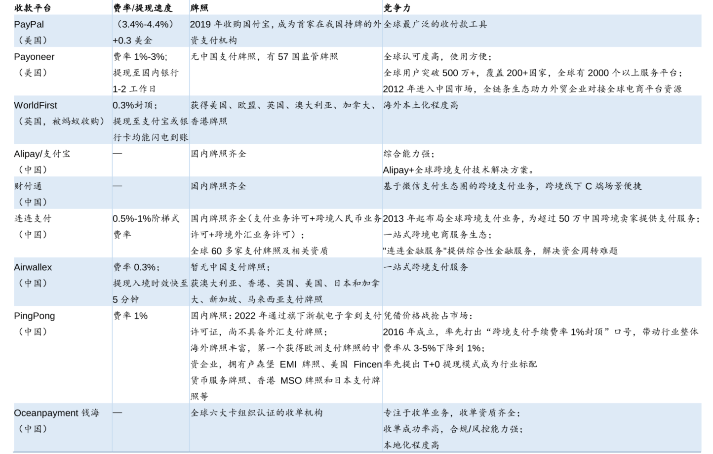 能取得营收增长,其实也一定程度上反映出,连连数字在跨境支付上已经形成了一定的规模优势,而这无外乎三大资源禀赋:技术研发、营销服务和全球牌照。这三者的定位是,技术研发提供长期竞争优势,决定了跨境支付厂商的下限;营销服务则属于短期竞争优势,决定了跨境支付厂商的上限;而全球牌照则属于市场“入场券”。