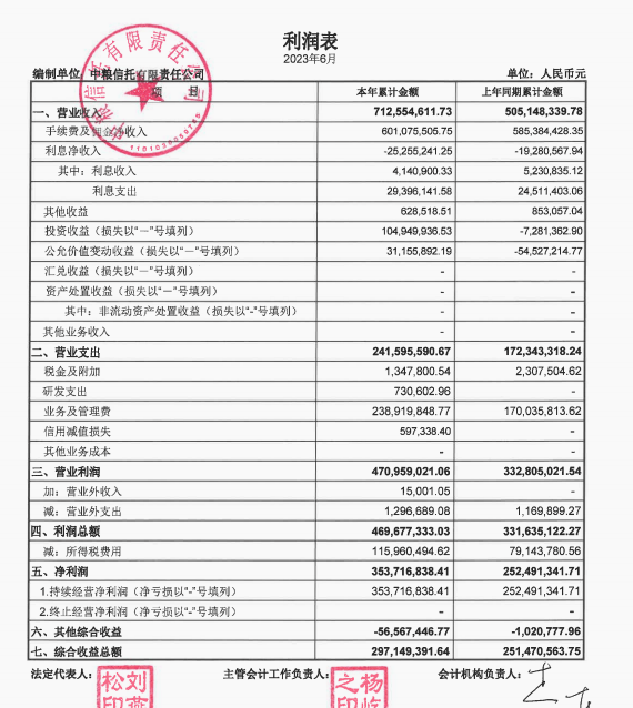 中国网财经7月14日讯 今日,中粮资本发布关于中粮信托2023年半年度财务报表的自愿性信息披露公告显示,上半年中粮信托实现营收7.13亿元,同比上升41.18%;实现净利3.54亿元,同比上升39.92%。