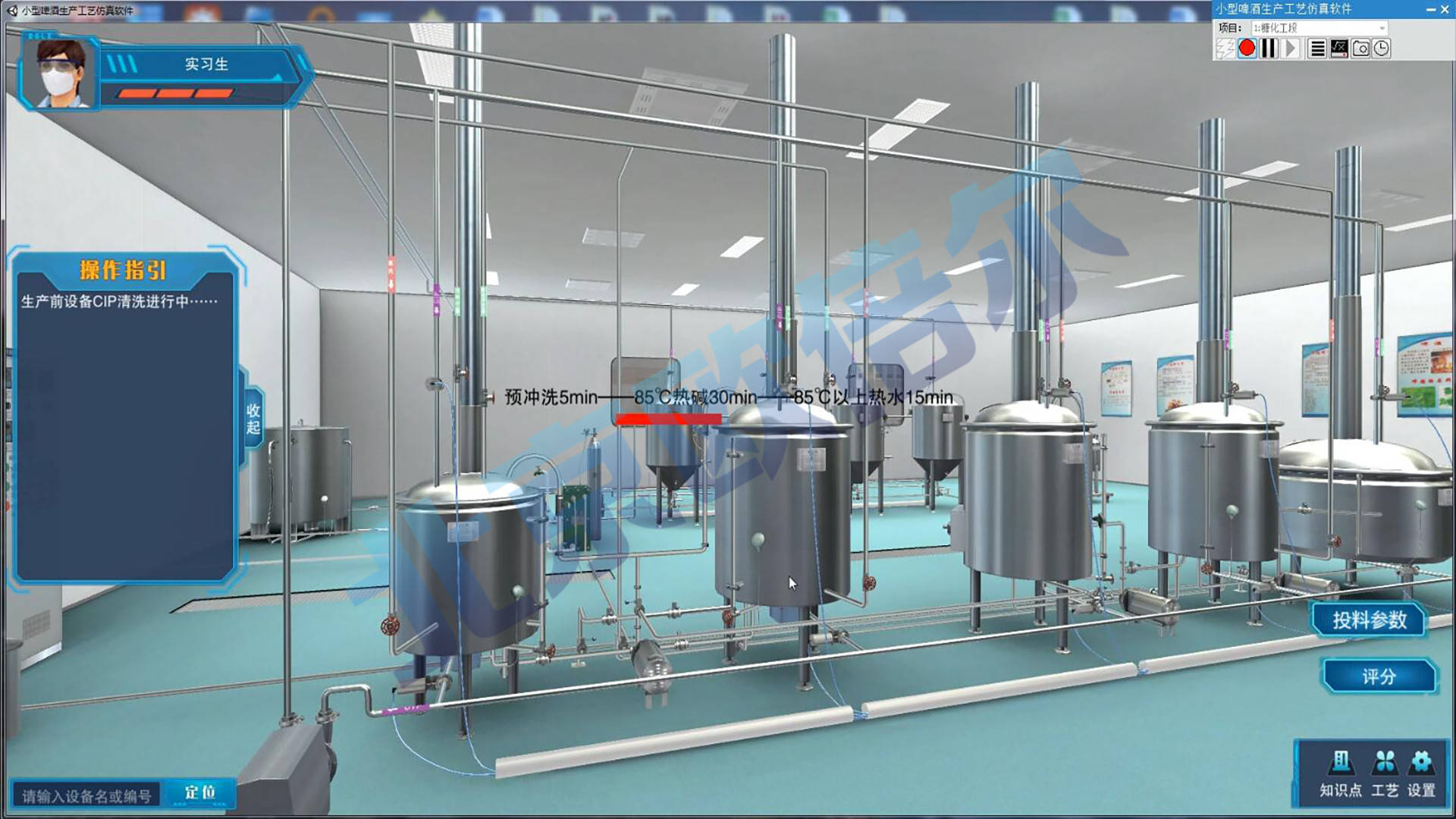 北京欧倍尔的啤酒虚拟仿真采用虚拟现实技术,模拟啤酒生产工艺流程,3D操作画面具有很强的环境真实感、操作灵活性和独立自主性,解决了实际操作过程中的某些盲点,为学生提供了一个自主发挥的实践平台,特别有利于调动学生动脑思考,培养学生的动手能力,同时也增强了学习的趣味性。
