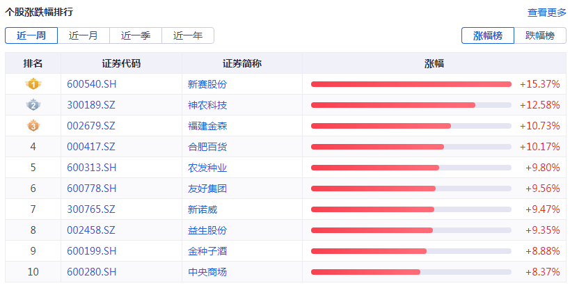 个股周涨幅