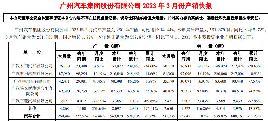 到了4月份,广汽三菱的销量不再单独披露于广汽集团的产销快报中,而是合创汽车、广汽日野等共同归于“其他”类目中。