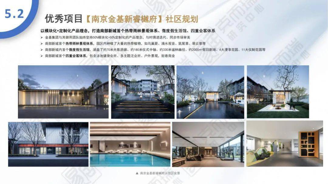 - 南京金基新睿樾府:位于南部新城大校场中央活力住区组团中部,宜居属性强,地铁上盖项目;金基府系作品,以模块化+定制化产品理念,打造南部新城首个热带雨林景观体系、微度假生活馆、四重会客体系;“三恒两舒”科技宅,给予生活细致入微的享受。
