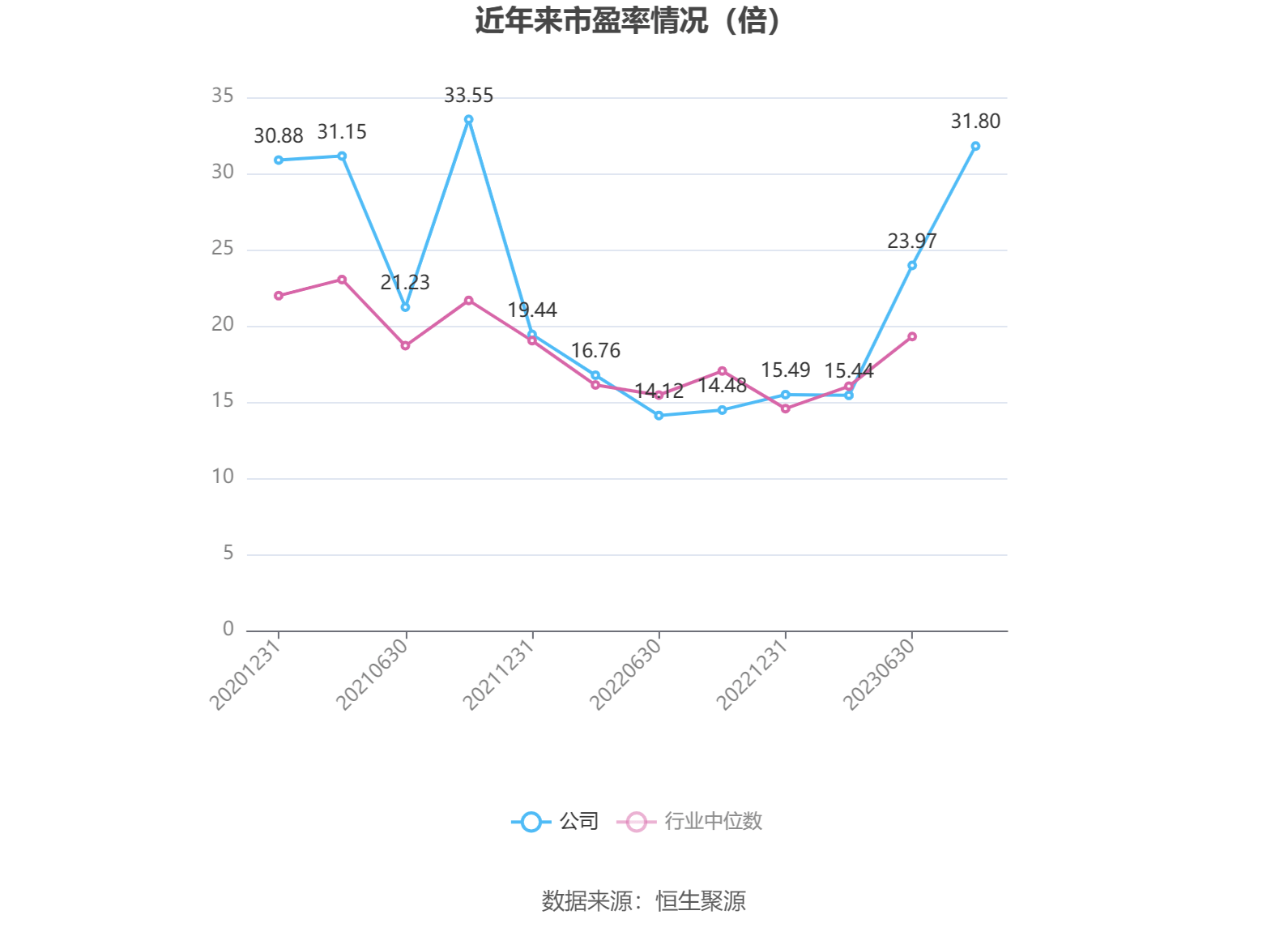 以本次披露业绩预告均值计算,公司近年市盈率(TTM)图如下所示: