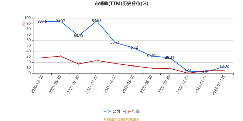 公司近年市盈率(TTM)、市净率(LF)、市销率(TTM)历史分位图如下所示: