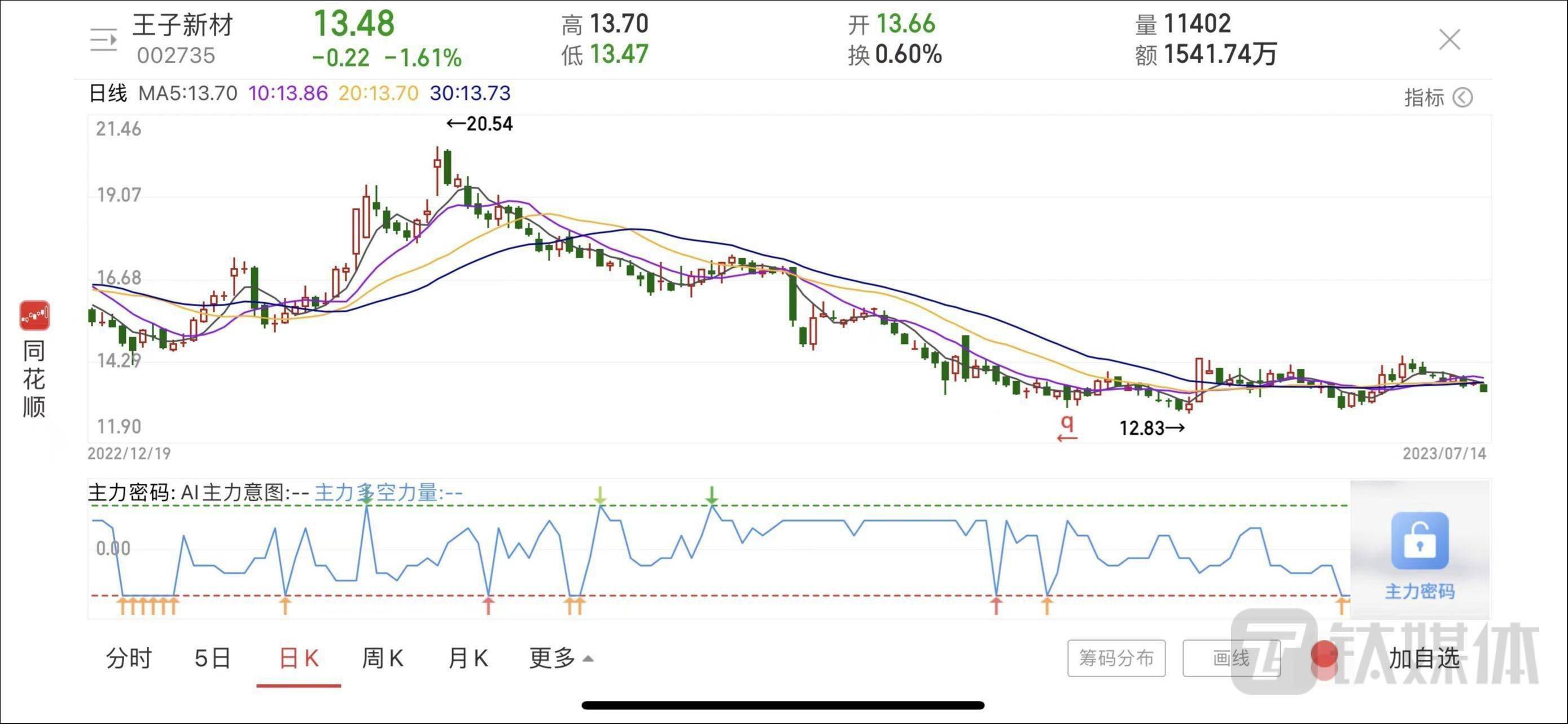 二级市场方面,截至7月14日收盘,王子新材股价报收13.48元,跌幅1.61%,当前总市值为41.43亿元。
